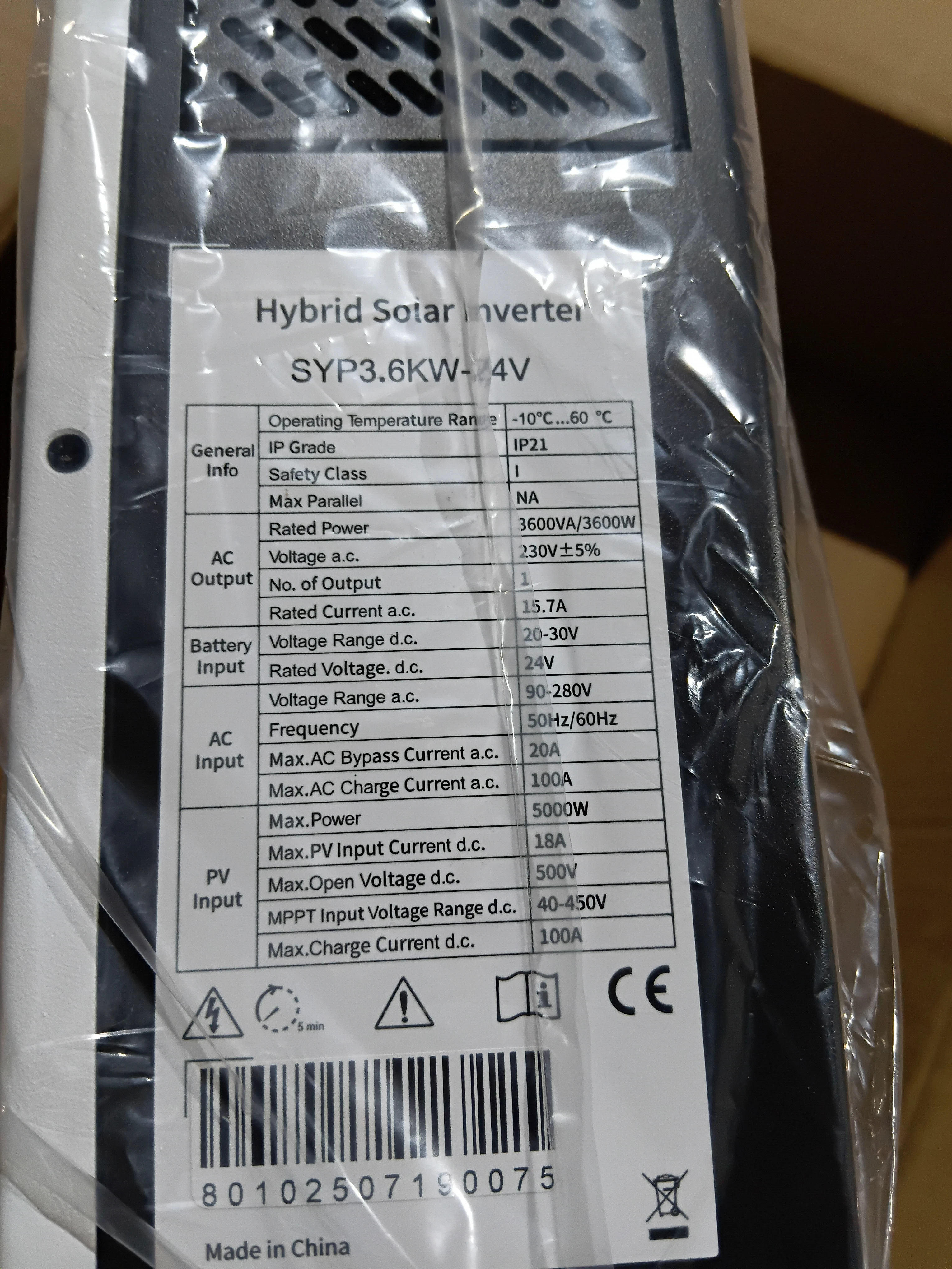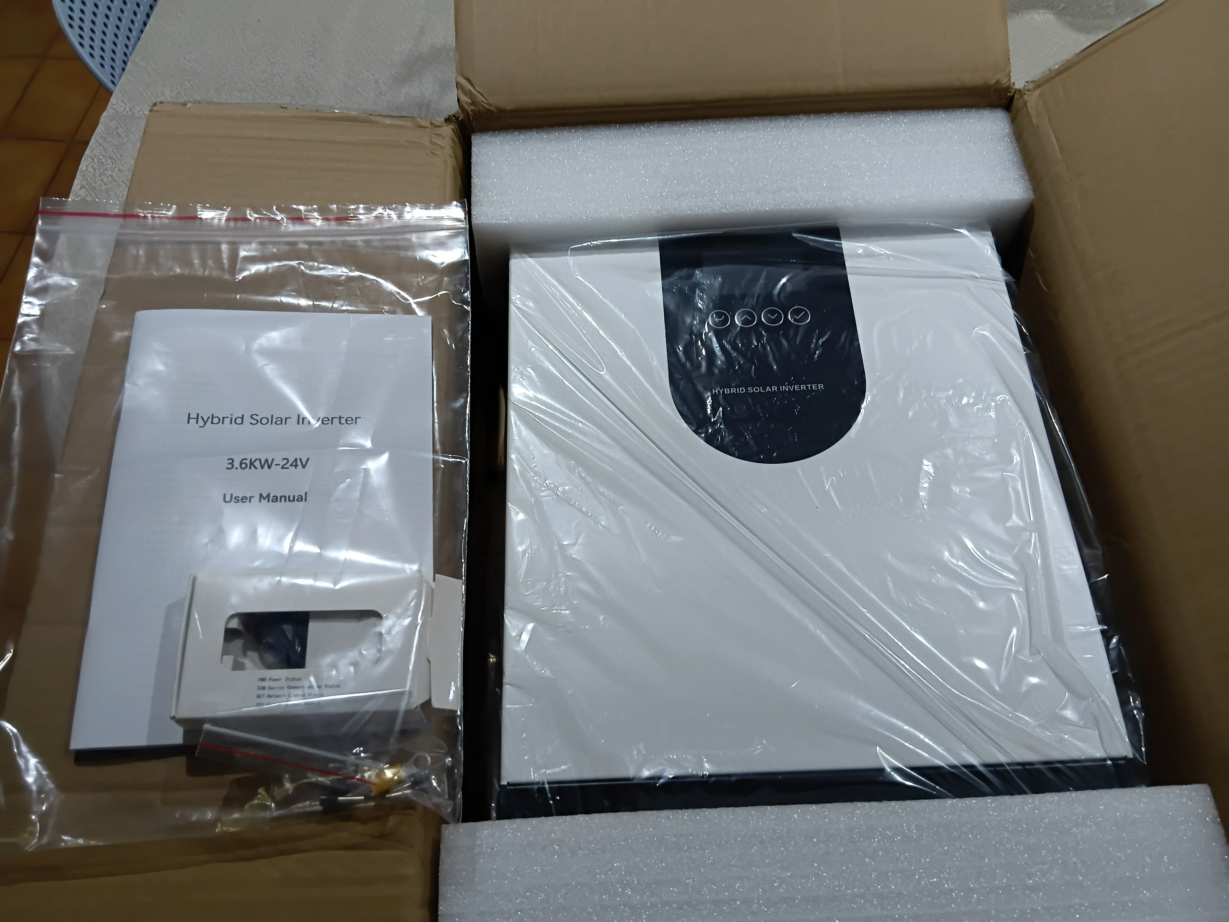 onduleur hybride 3,6kw 24v , emballage et expedition tapide , materiel de bonne qualité fabrication , bon rapport qualité prix , pas encore essayer , je recommande ce fournisseur
